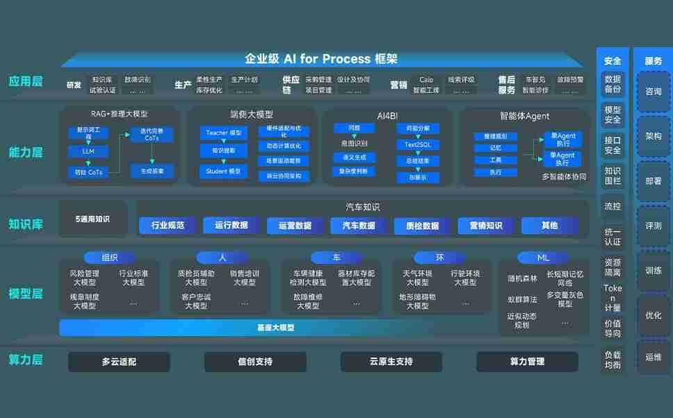 欧博代理平台问学智车解决方案是一套基于AI技术的汽车行业智能化系统,,覆盖从底层算力到顶层AI应用的全栈方案。。方案由算力层、、、模型层和应用层组成:算力层,,,,方案支持多种一体机配置,,具备云端灵活部署、、、、多云适配以及动态优化计算资源的能力;模型层,,,欧博代理平台问学平台版提供了企业级AI应用一站式构建与管理平台,,,支持基于后训练强化技术的汽车企业专属模型的训练、、评测和运营;应用层,,,欧博代理平台问学DeepSeek版提供包括超级员工、、、智能招采、、、智能营销、、、智能客服、、、、AI for BI等一系列解决方案,,,可助力汽车行业实现数字化转型,,让管理更智能、、响应更敏捷。。。。